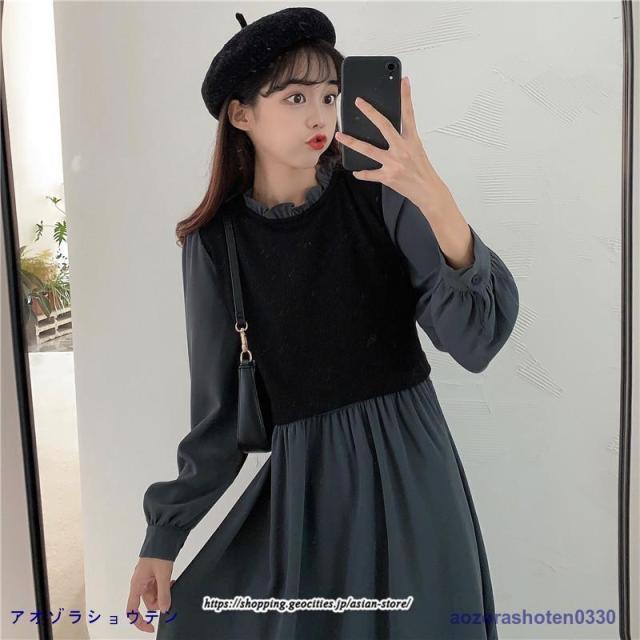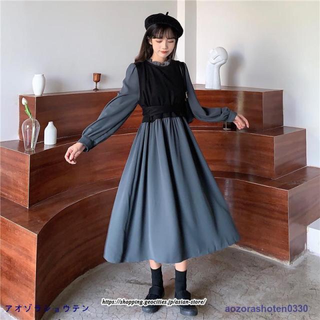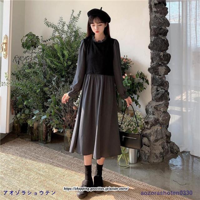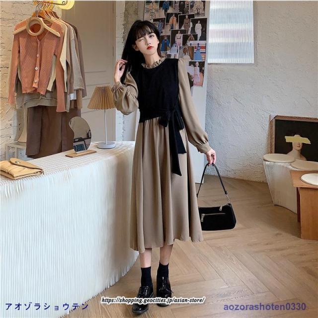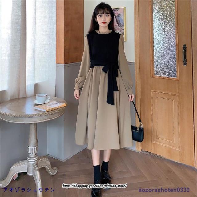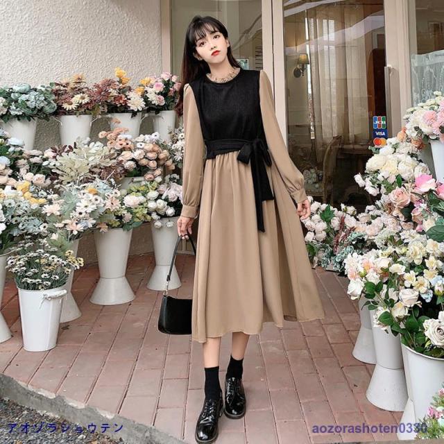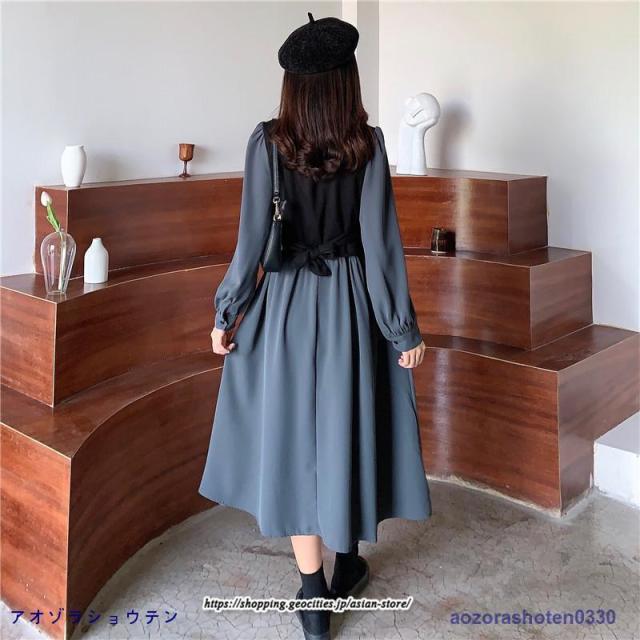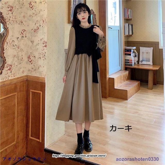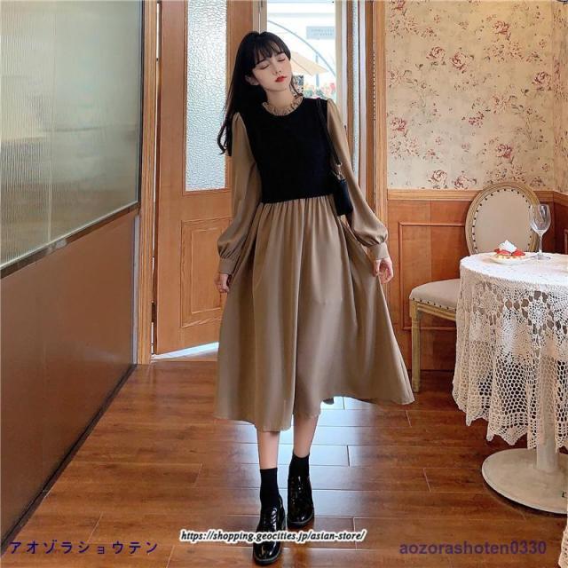 ワンピース レディース おしゃれ ロングワンピ 40代 50代 膝丈ワンピース 韓国 着痩せ 大人可愛い 通勤 秋服