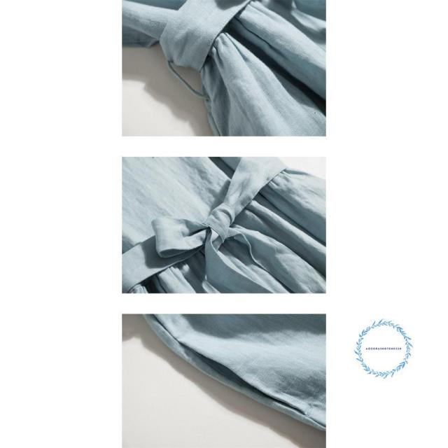 『リネン100%リボン付きフレアワンピース』
