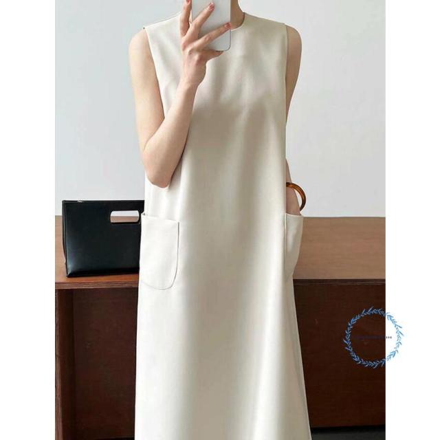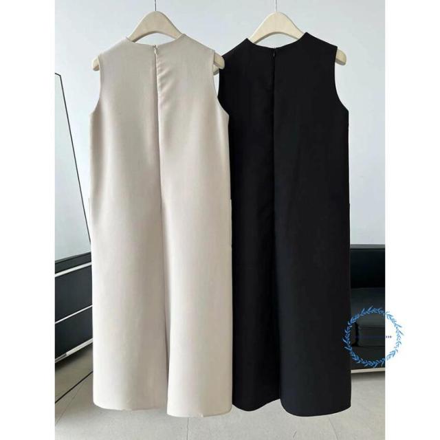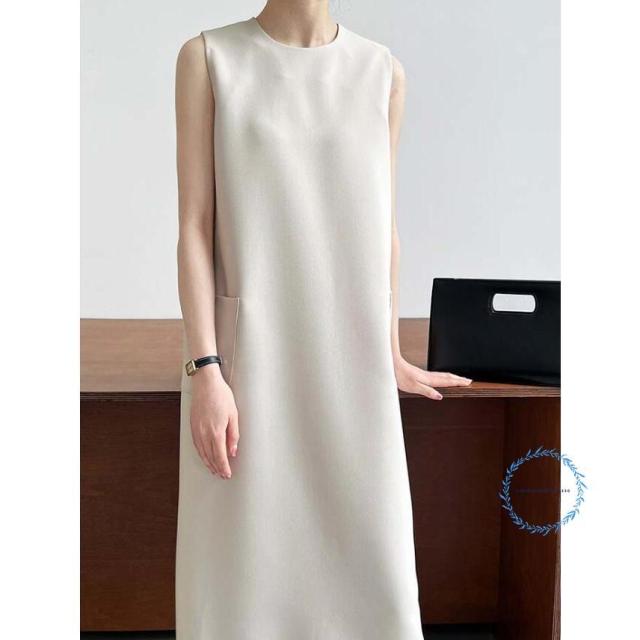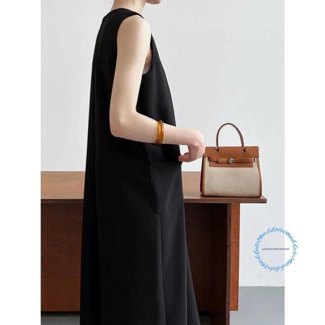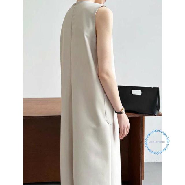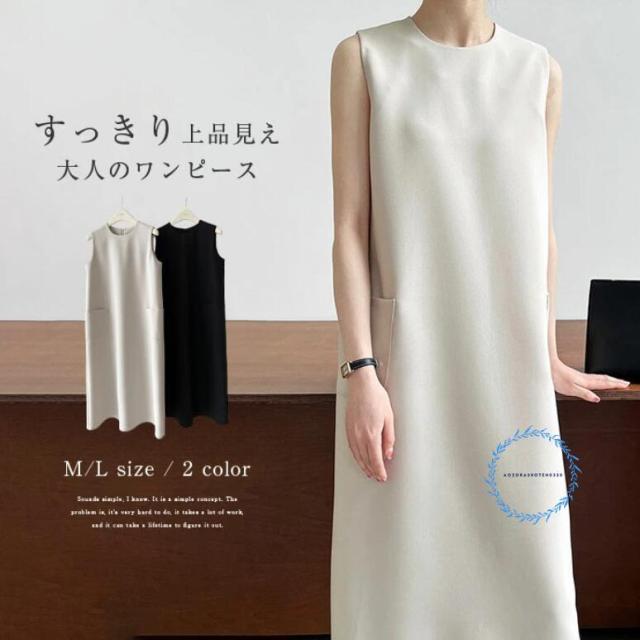 ワンピース 春 夏 レディース ノースリーブ ロング丈 Iライン きれいめ 夏 秋 ドレス ワンピース お洒落 体型カバー 着痩せ 華奢見え