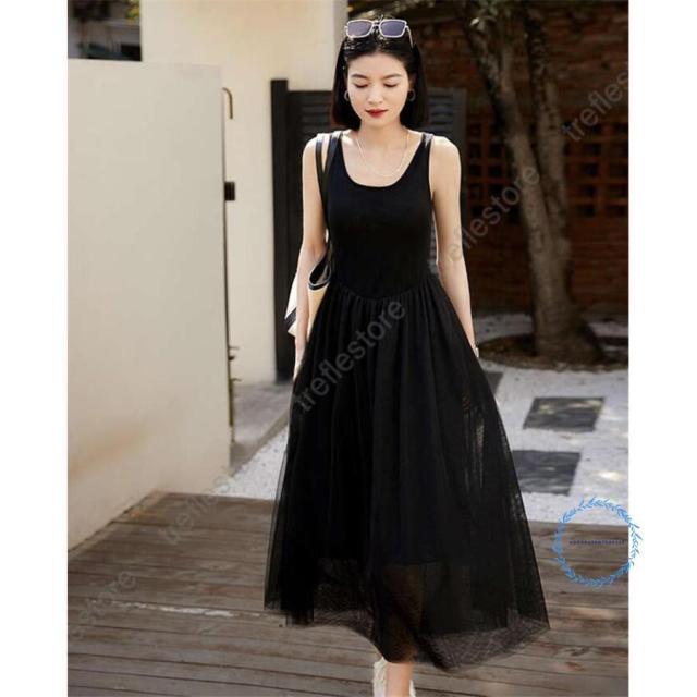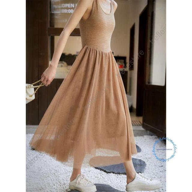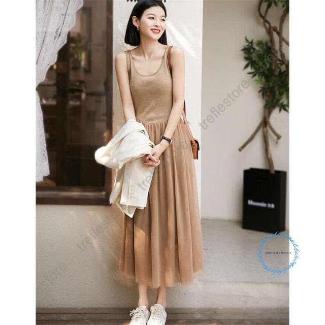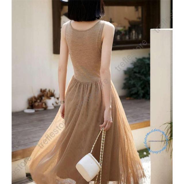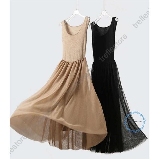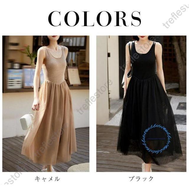 ワンピース レディース ロングワンピース キャミワンピース Uネック チュールスカート チュール ワンピ 春 夏 ノースリーブ タンクトップワンピース インナー