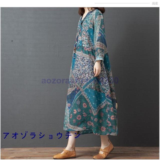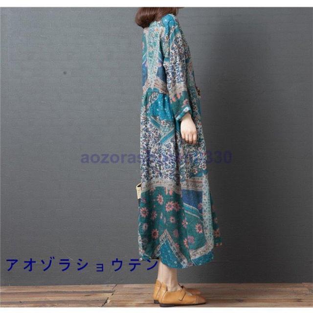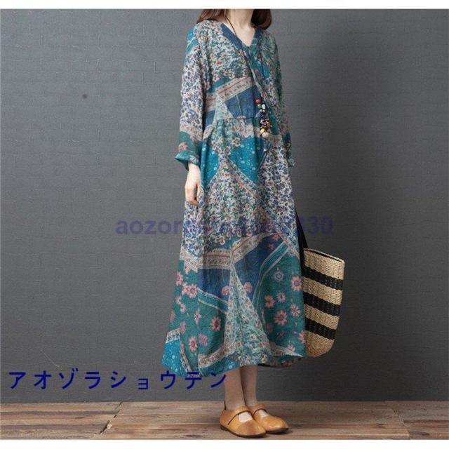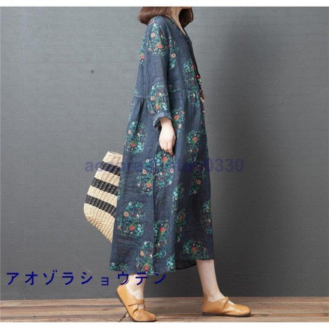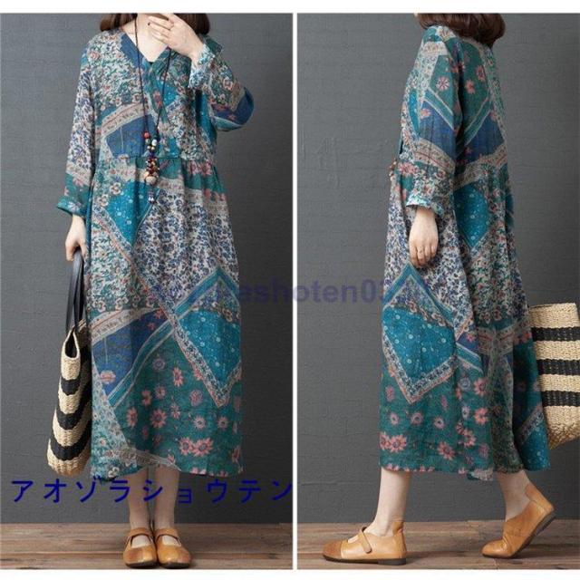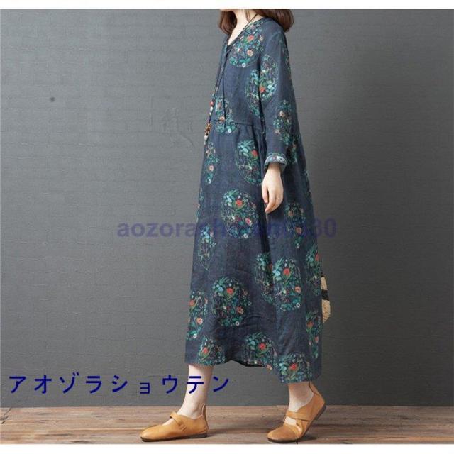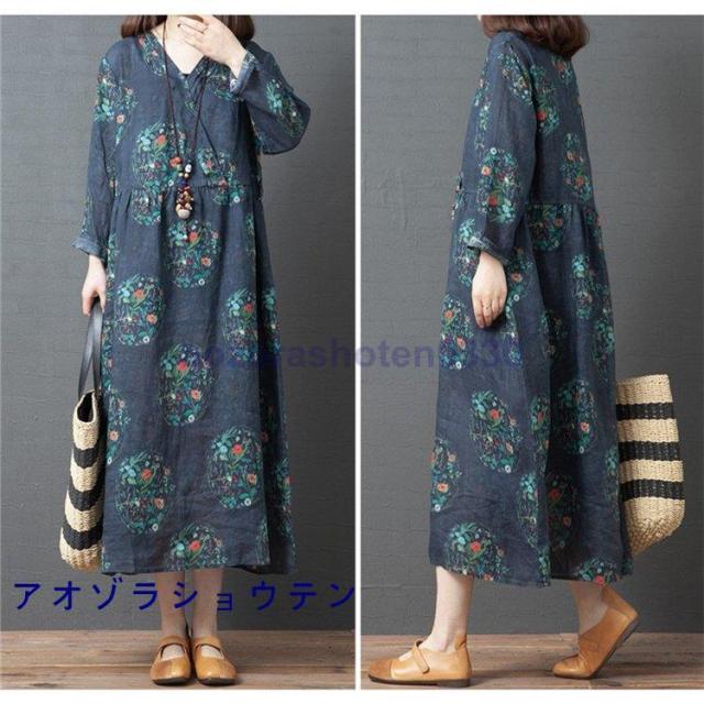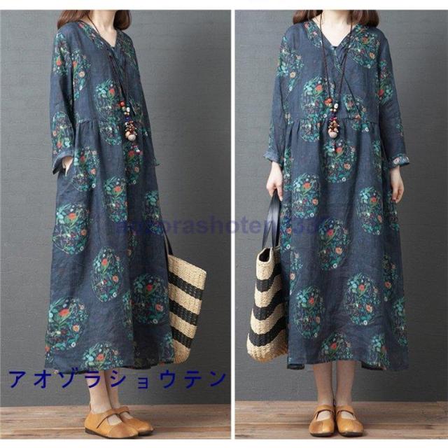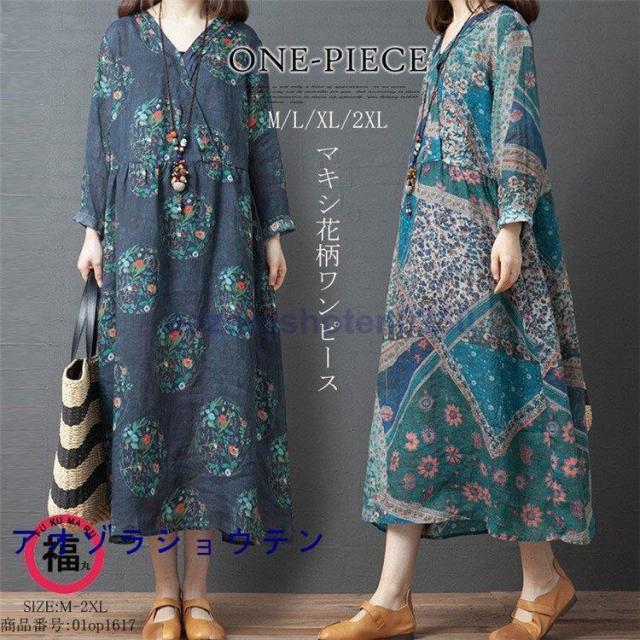 マキシワンピース マキシワンピ ロングワンピ ワンピース ロングワンピース 長袖ワンピース 綿麻ワンピース レディース チュニック マキシ ロング 花柄 40代 体型カバー ゆったり マキシ丈 リネン 綿麻 綿 麻 ゆったり 着痩せ レトロ レトロ風 きれいめ オ