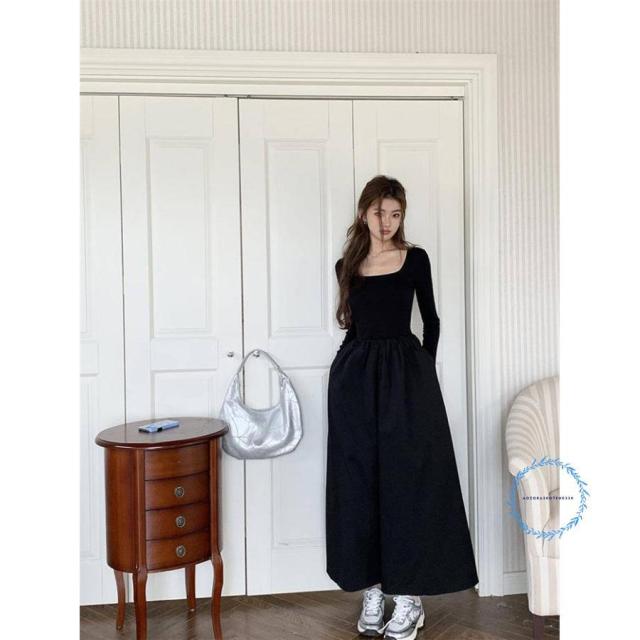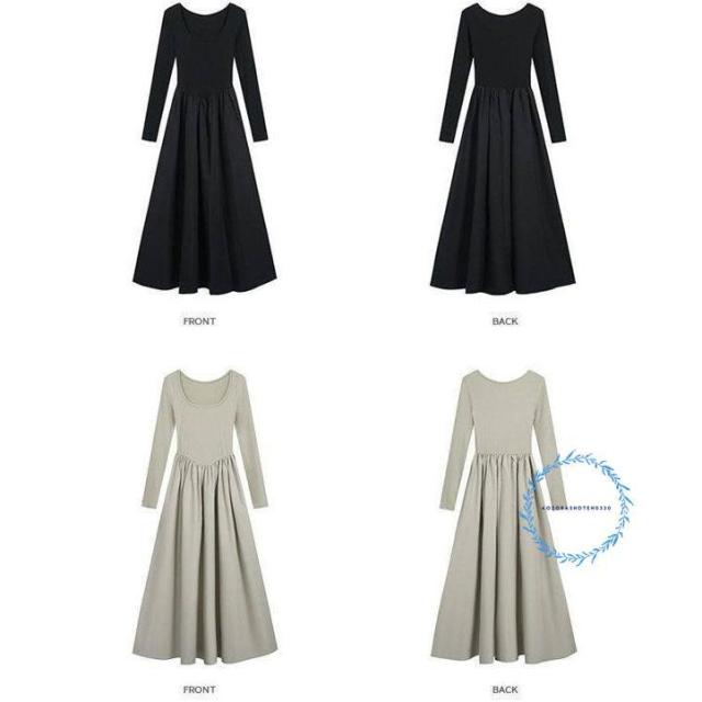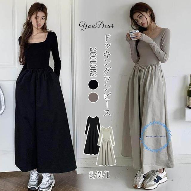 ワンピース ドッキング ドッキングワンピース リブ リブニット ニットワンピース マタニティ 異素材 低身長 高身長 ワンピ 無地 ロング きれいめ Aライン 着痩せ