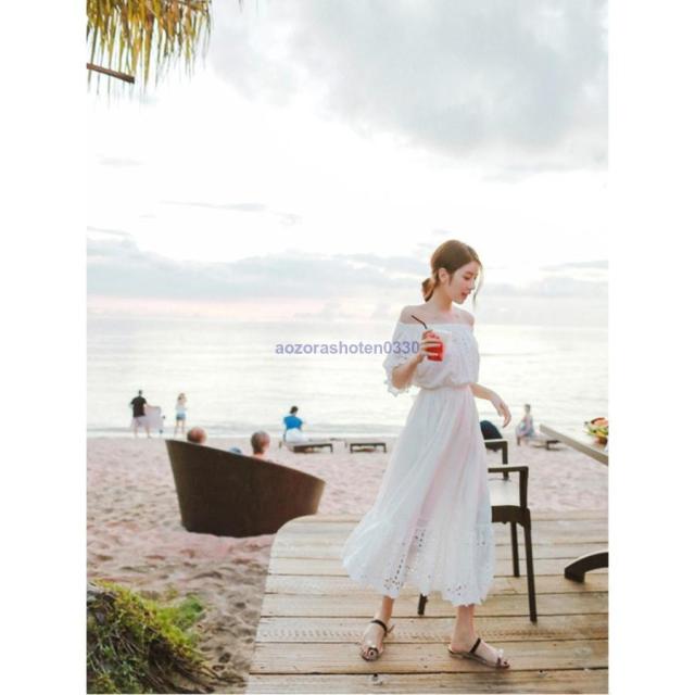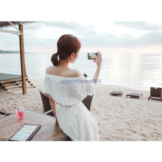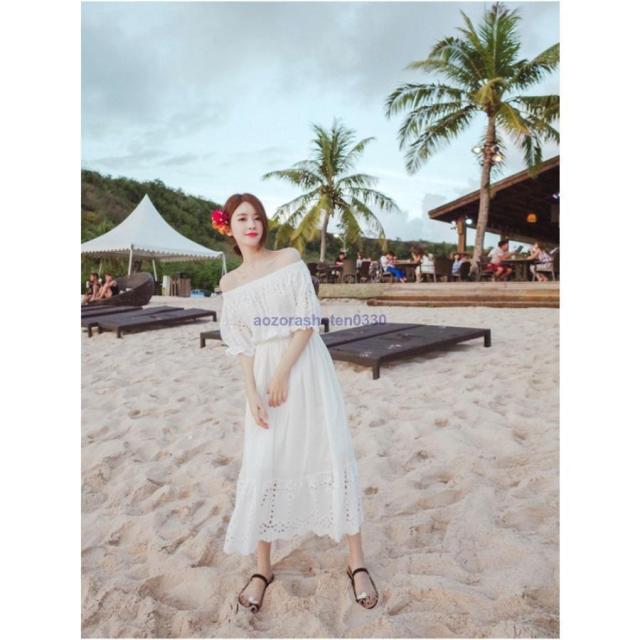 ワンピース レディース 夏 マキシワンピース ボートネック 白レース ワンピース 韓国 膝丈 ロング丈ワンピース オフショルダー オシャレ 上品 旅行 海デート