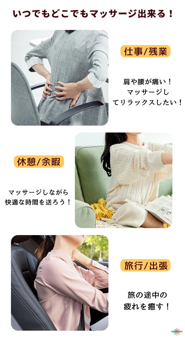 マッサージ機 電動マッサージ枕 コンパクト 小型 マッサージャー リラックス 車用 首 肩 腰 頸椎 背中 太もも 肩こり ストレス解消 マッサージピロー ヒーター付き 寝ながら メンズ ファッション