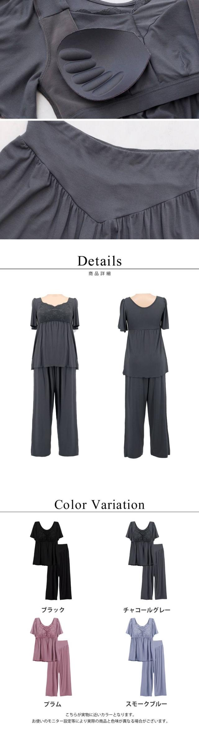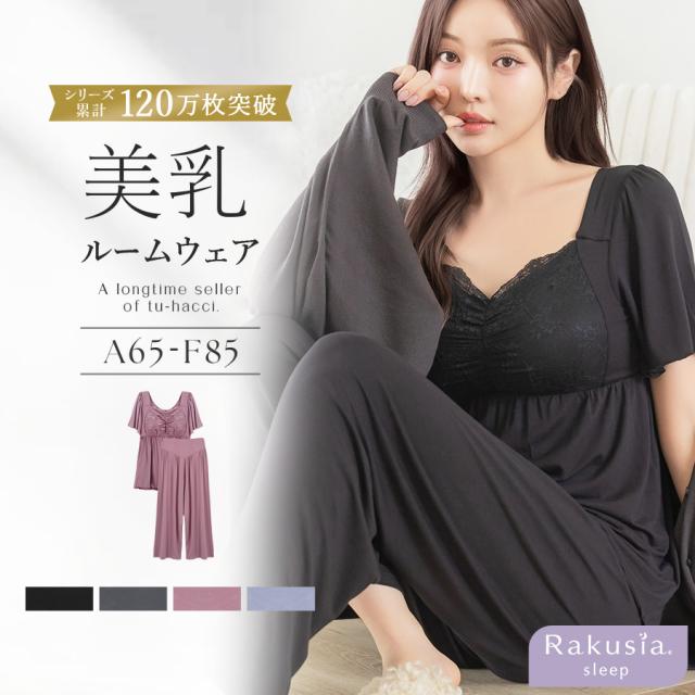 tu-hacci Nightbra Collection ナイトブラ一体型半袖トップス&ルームパンツ(ロング丈)/計2点セット 〜tu-hacciのナイトブラシリーズ「ラクシアスリープ」〜 tu-hacciの人気No.1ナイトブラ「ラクシア」から、ルームウェアとしても着られる半袖トップス一体型タイプが新登場! 上品なレースデザインはそのままに、カップ部分はやや高さを出し、谷間が見えにくい仕様に。 ナイトブラ単体と同様、柔らかな素材のため授乳もOK。 胸下からふんわり広がるAラインで、ボディラインを拾わずゆったりとした着心地です。 体型が気になる方や、マタニティウェアとしてもご着用いただけます。 【こんな方におすすめ】 ・最近バストの下垂が気になる ・脇や背中にお肉が流れる ・産前産後のバストの変化が気になる ・手軽にバストケアをしたい ・窮屈な下着が苦手 ・可愛いルームウェアを探している ■美胸サポート機能+こだわりデザインの半袖トップス ・背中までぐるりと覆うパワーネットが、バストの横流れをしっかりブロック ・バスト全体を包み込むハンド型パッドで、美しい丸みをキープ ・ストレスフリーなソフト生地で24時間着用OK ・Aラインシルエットがお腹まわりをやさしくカバー ・フレアスリーブが気になる二の腕もさりげなくカバー 〜授乳ブラ・マタニティブラとしても〜 伸縮性のある素材で、カップを下げての授乳もスムーズ。 マタニティ期のデリケートなお肌にもやさしくフィットします。 ■上品さも叶えるルームパンツ ・体のラインを拾いにくいシルエットで、ヒップまわりも自然にカバー ・腹巻き一体型のロング丈で、お腹や腰まわりの冷え対策にも◎ ・伸縮性のある素材で、幅広い体型の方にフィット マタニティウェアとしても着用OK◎ ※産前産後の体型変化には個人差がございます。 ご妊娠中に着用される場合は普段よりも大きめサイズをお選びください。 可愛らしさの中に、大人の落ち着きを感じさせるフェミニンな上下セットです。 プレゼントにもおすすめ♪ ≫ ギフトラッピングはこちら ≪ ![]()