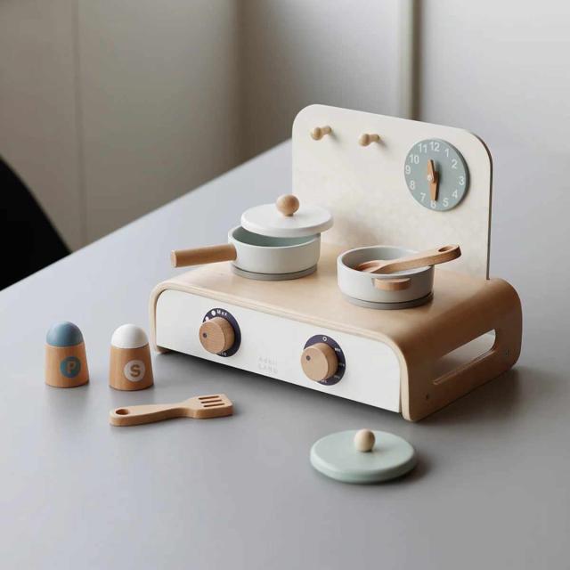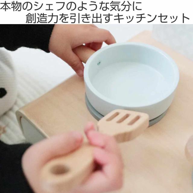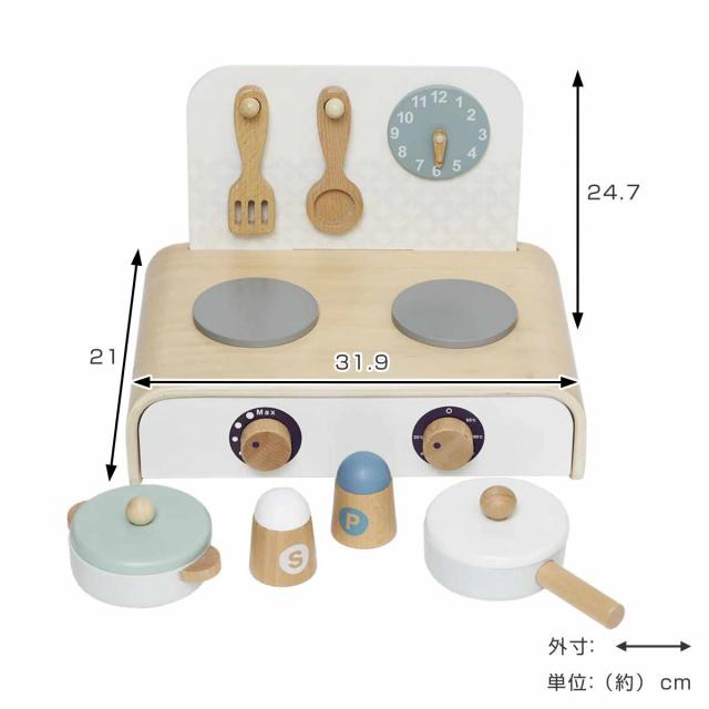 コンロ、キッチンツール、調味料がセットになったキッチンセットです。温かみのある木製なので、温かい触り心地、特有の香り、柔らかい響きを体感できます。