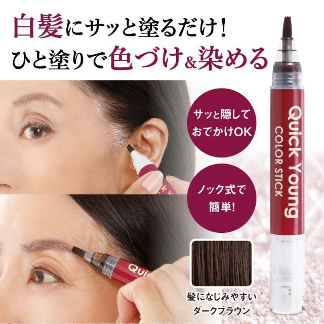 クイックヤングカラースティック 白髪隠し 部分白髪用 白髪対策 ポイントカラー 日本製 携帯便利 部分染め お出かけ前 ヘアカラー 早染め