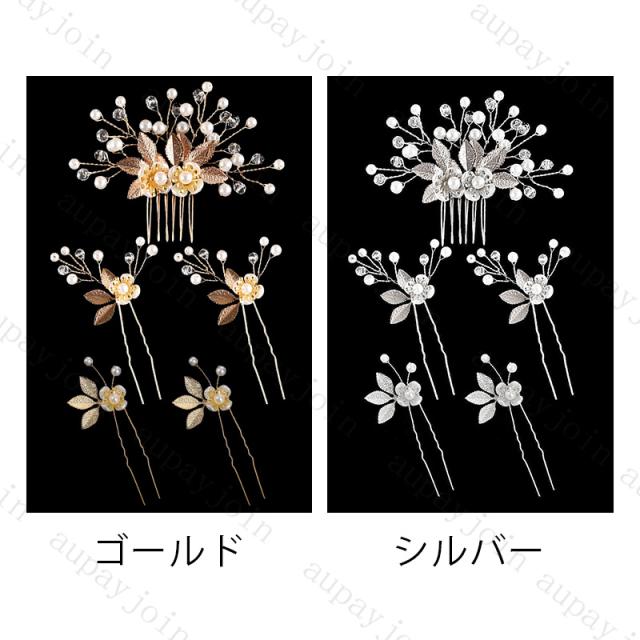 ヘアピン (h202#) 当日発送 2color 5点セット 髪飾り かんざし 簪 パール 結婚式 着物 成人式 ヘアアクセサリー 留袖 ヘッドドレス 和装 花嫁 振袖 洋装 ドレス