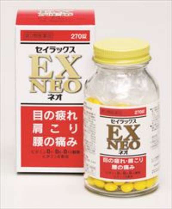 「セイラックスEXネオ」は、目の疲れ、肩こり、腰の痛みに 主成分であるビタミンB1誘導体フルスルチアミンに加えB6、B12を配合し、「目の疲れ」「肩こり」「腰の痛み」などのツライ症状にすぐれた効果をあらわします。