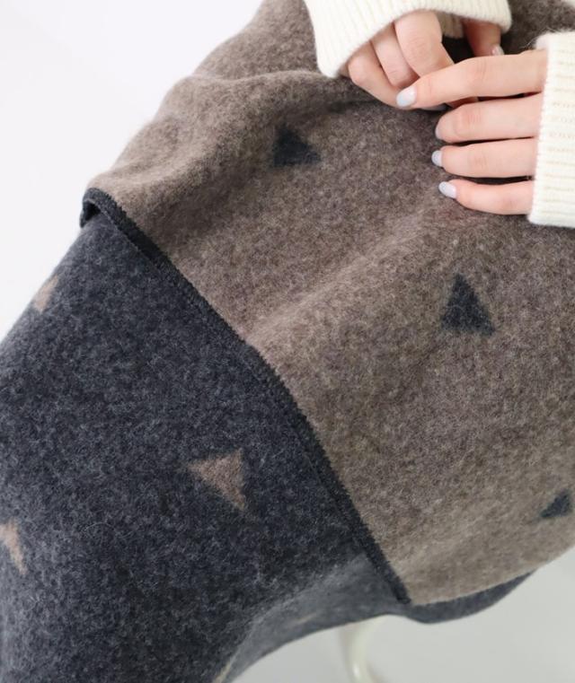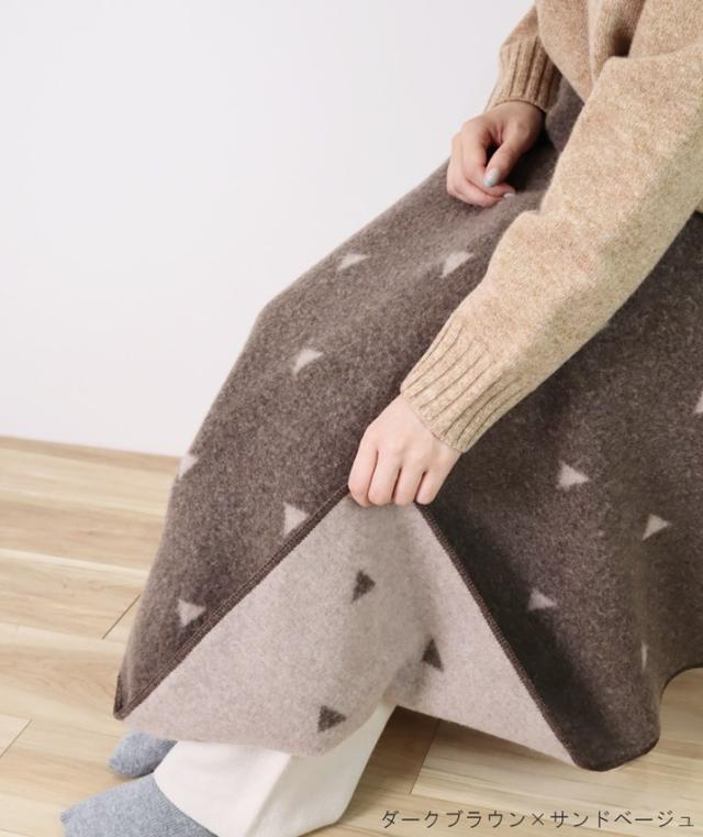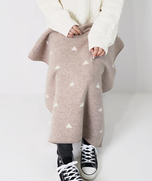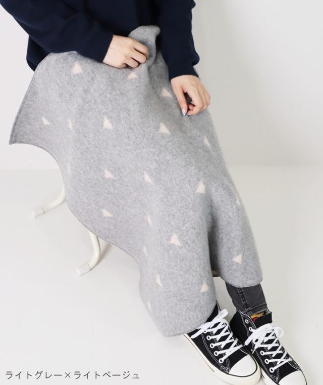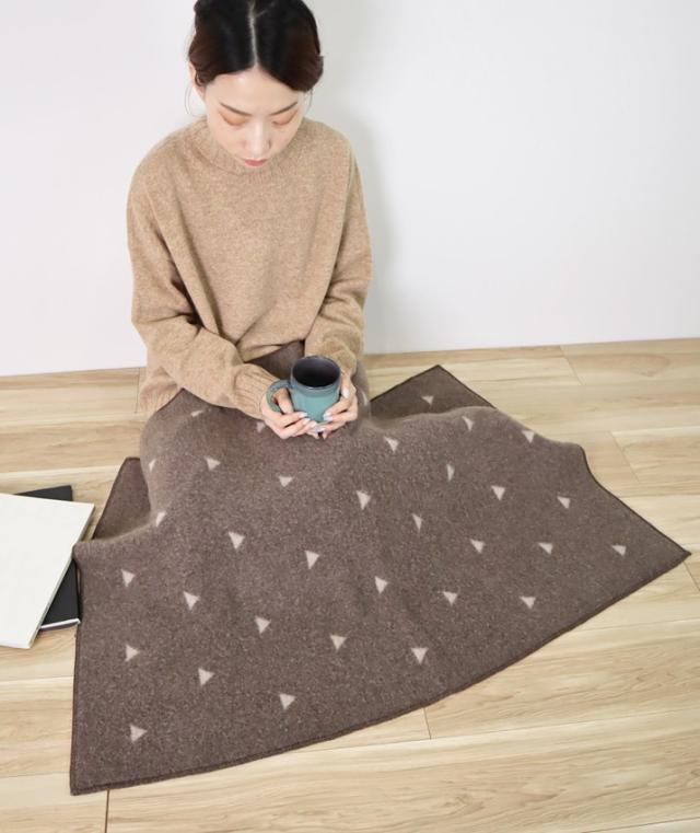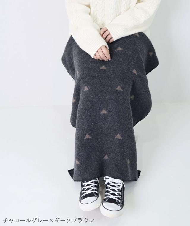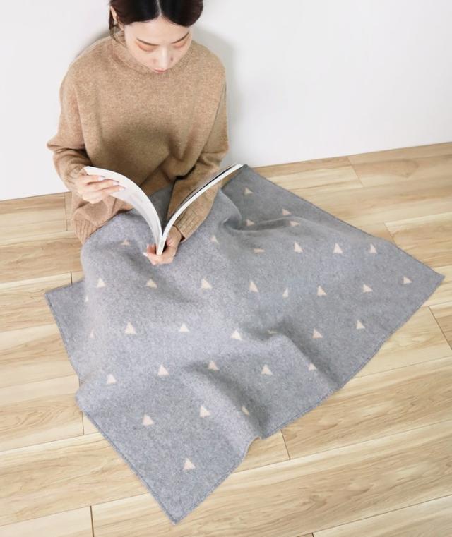 ひざに掛けるとちらっと見える配色がポイントに。両方使えるリバーシブル仕様なので、その日の気分に合わせて使えます。