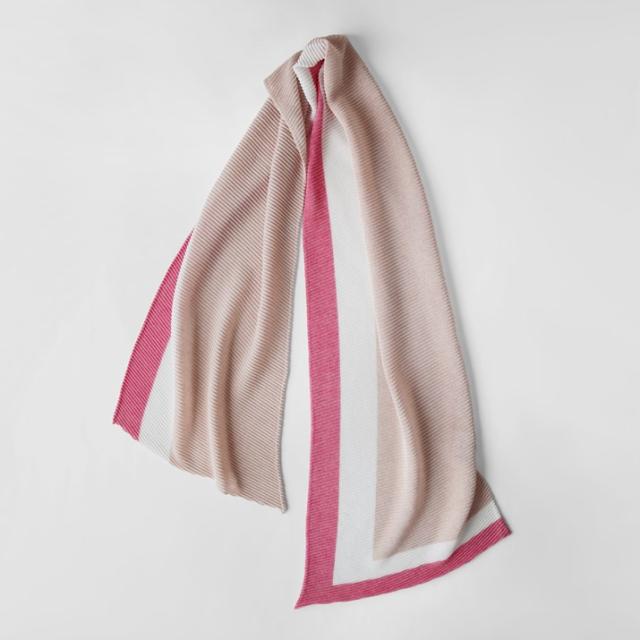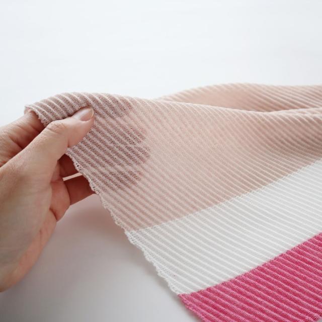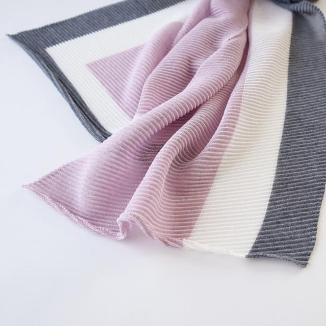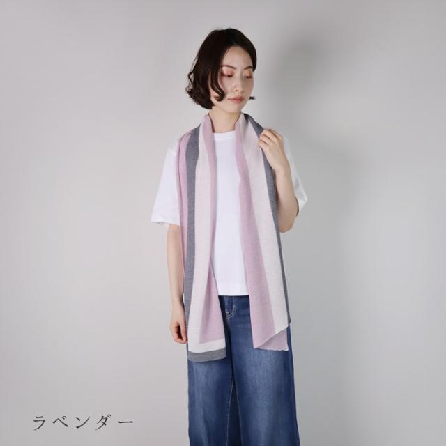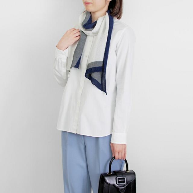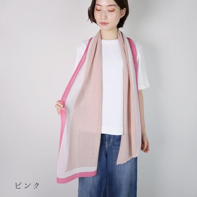 軽さのあるポリエステルと通気性の良いコットンをブレンドした素材でつくったニットのストールです。
