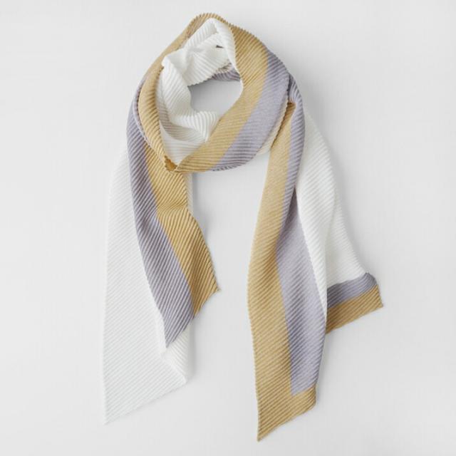 素材とディティールにこだわったプリーツストールは、コーディネートに立体感をプラスしてくれます。 カジュアルからキレイめまで幅広いスタイルに合わせて使えて、ロングシーズン楽しめるストールです。