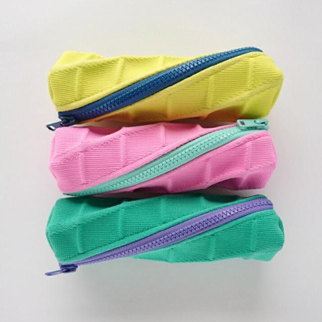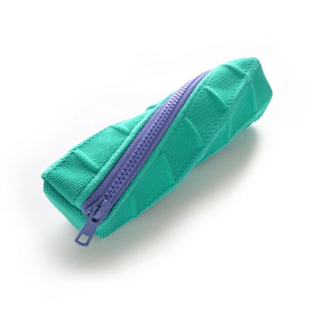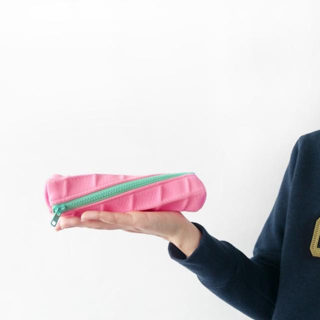 このペンケースを初めて見る時、みんな子供みたいに目を輝かせてこう言うんです。 今までのニットにはない感触、おもしろい形、カラフルな色づかいのペンケースは学校やオフィスで話題になりそう! ねじれていてもファスナーの開閉はスムーズ。YKK社のファスナーを使用しています。