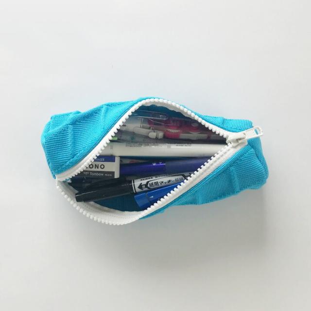 ペンが約12本と消しゴム、定規、シャープペンシルの芯、修正テープが入ります。コンパクトなサイズで持ち運びにも便利です。