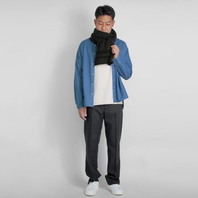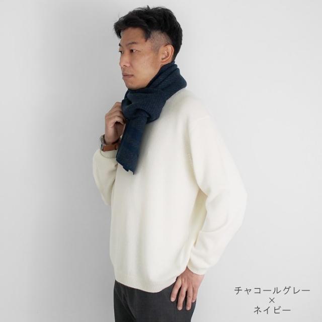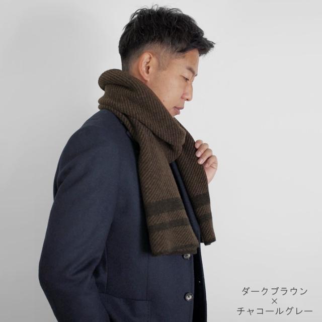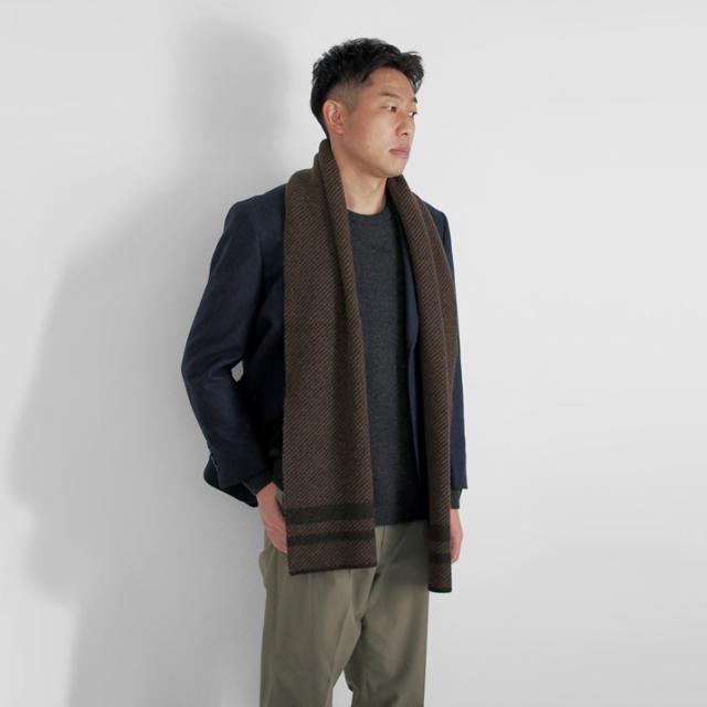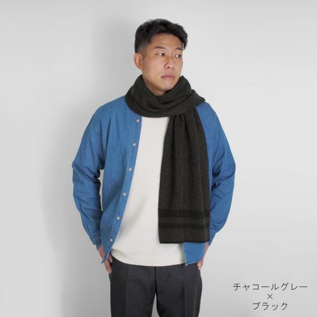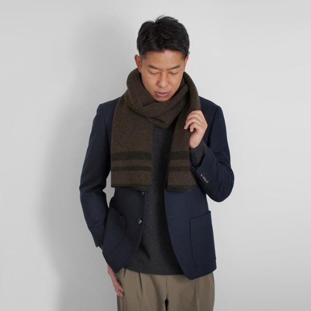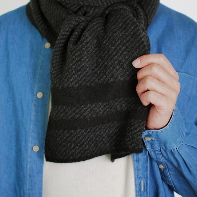 カシミヤ100%素材を使用した、軽くてあったかいナナメライン柄マフラーです。シンプルで落ち着いたデザインのマフラーは、秋冬の着こなしのアクセントとして活躍してくれます。