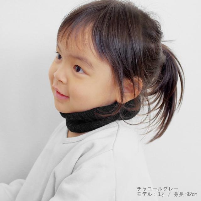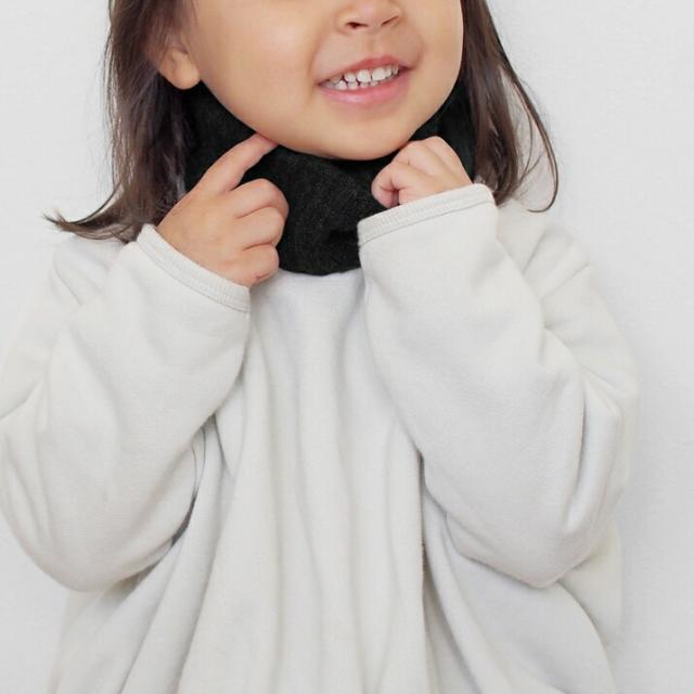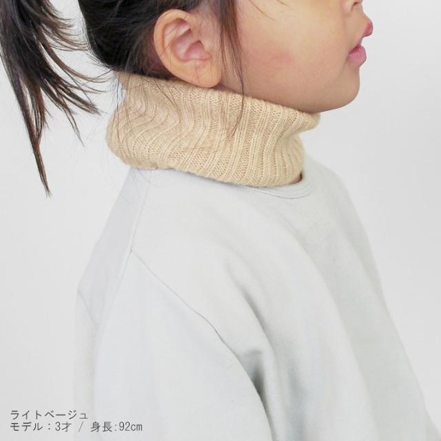 カシミヤ100%素材を使用した、軽くてあったかいネックウォーマーの子供用です。伸縮性に優れたリブ編みだから着脱が簡単。女の子も男の子もお使いいただけます。