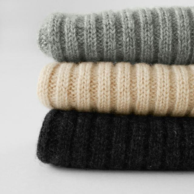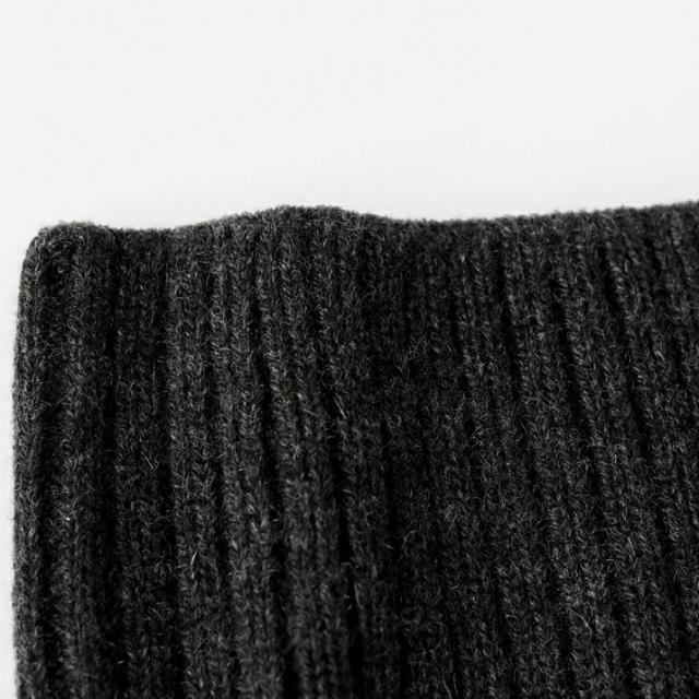 カシミヤの繊維はとても細くやわらかいため、素肌に触れてもチクチクしにくいのが特徴です。空気を含んだやわらかくて光沢のある毛質から、ウールにはない滑らかな肌触りが得られます。