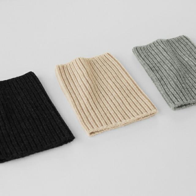 筒状に編まれたネックウォーマーは、二つ折りにして使うのはもちろん、そのままかぶってくしゃくしゃさせてもOK。その日の気分に合わせて、簡単に雰囲気を変えられます。