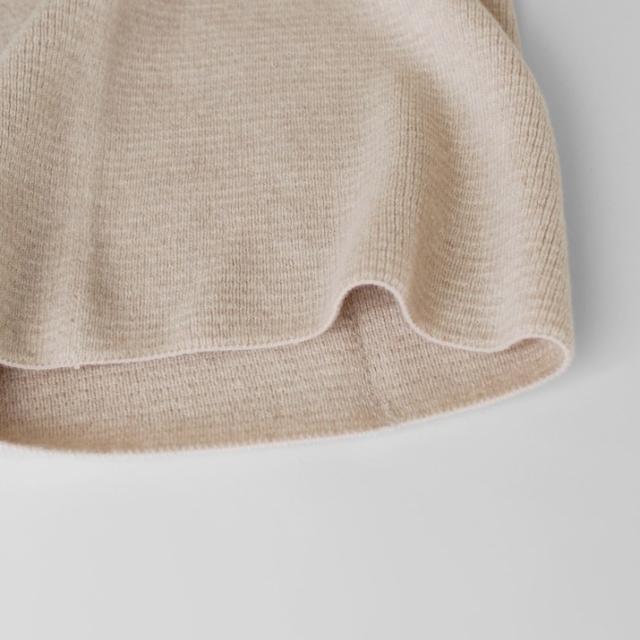 編地は伸縮性に優れたリブ編みを採用。無縫製ニットだから着け心地も快適です。 薄手仕様で着ぶくれしにくく、インナーとして使いやすいです。