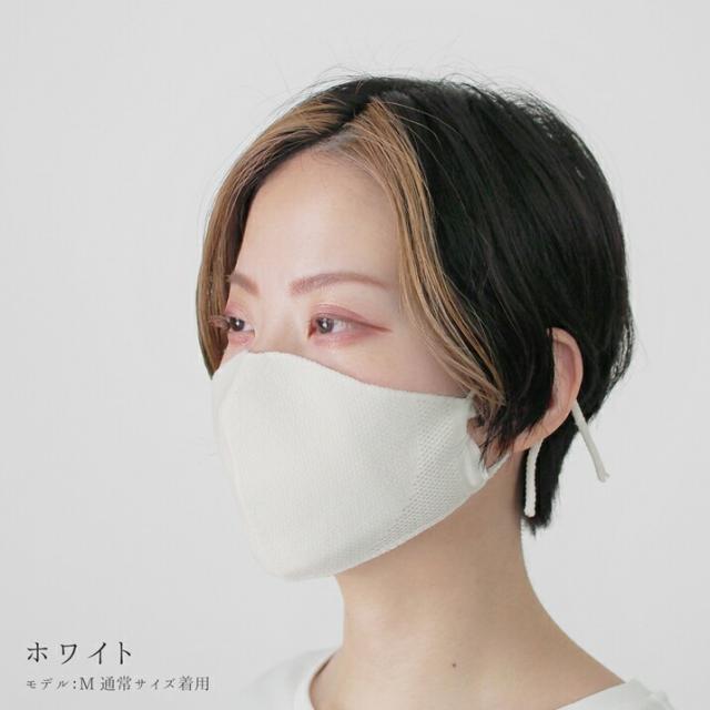 抗菌防臭加工を施した糸からつくったニットマスクです。ニットならではの立体的なフィット感と伸縮性が特徴です。撚りが強い糸を使用することで毛羽立ちを抑え、サラッとした肌触りが心地よい仕上りとなっています。