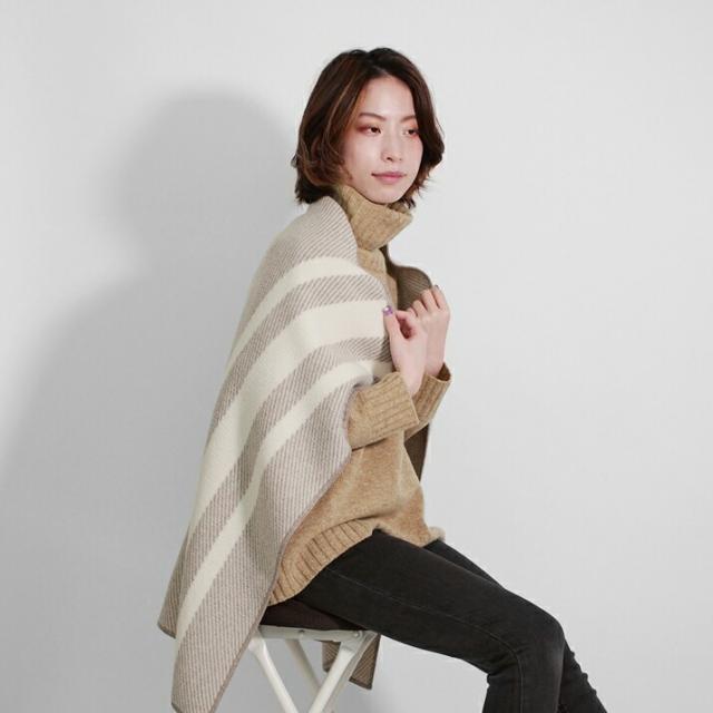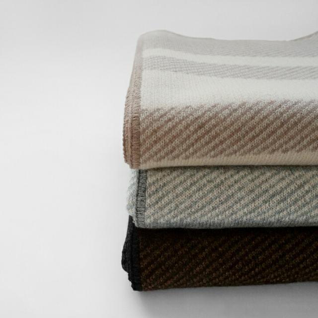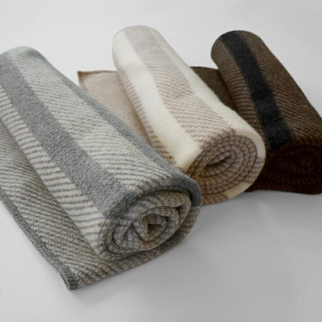 カシミヤ100%素材を使用した、軽くてあったかいナナメライン柄ブランケットです。