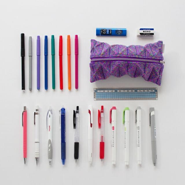 ペンが約19本と消しゴム、定規、シャープペンシルの芯が入ります。