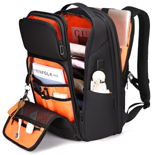 【USB充電ポート搭載・拡張可能・180°開閉】USBケーブルをリュック側の端子に接続するだけで、背負ったまま充電が可能です。耐久性のある生地を使用し、ビジネスシーンにも対応。金属製のダブルスライダーは滑りやすく、丈夫で長持ちします。リュックには7cmの拡張機能があり、専用のPCコンパートメントも完備。