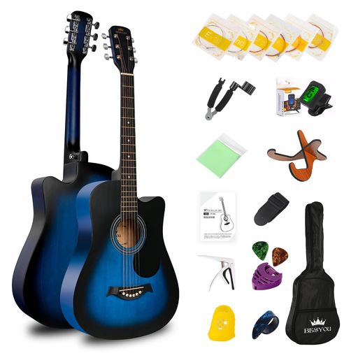 BESYOU ギター アコースティック ベース13点セット 入門練習 38インチ 初心者セット 子供 学生用 アコギ 日本語取扱?明書 ソフトケース ギタースタンド付き