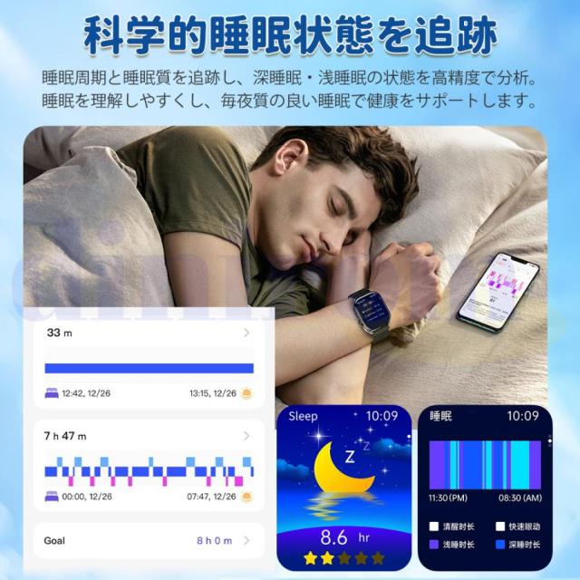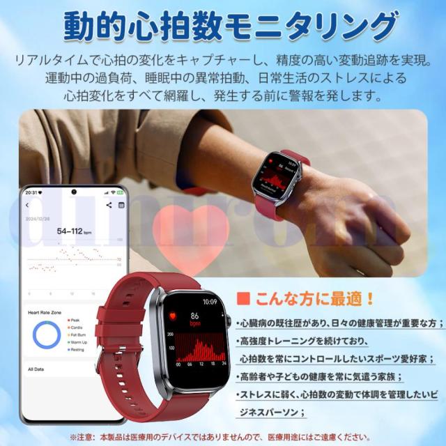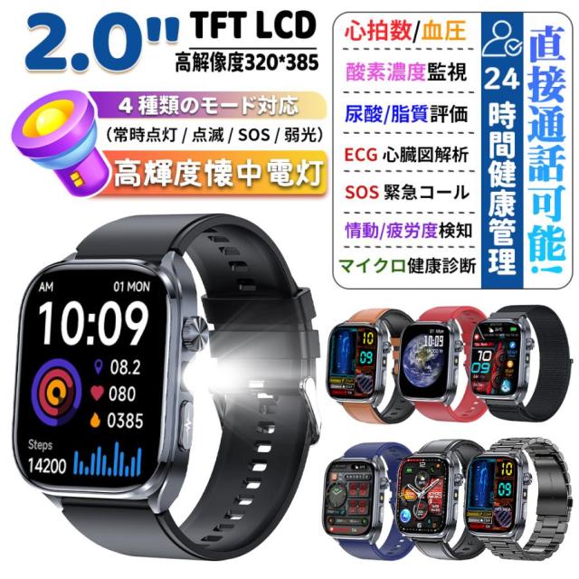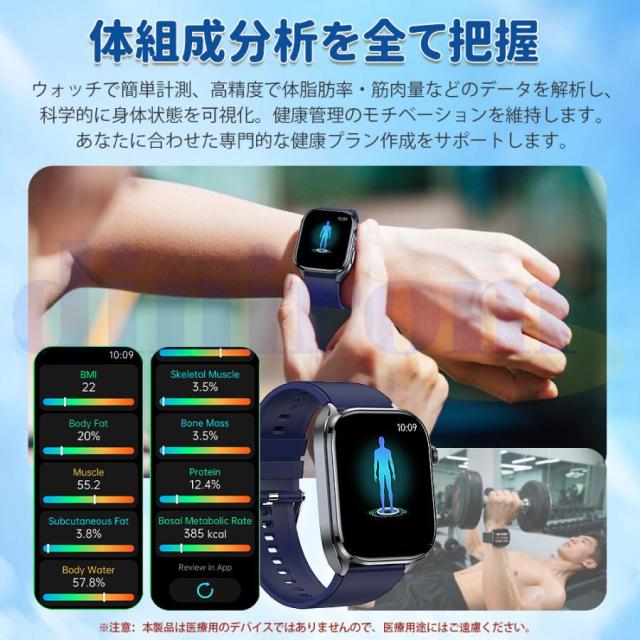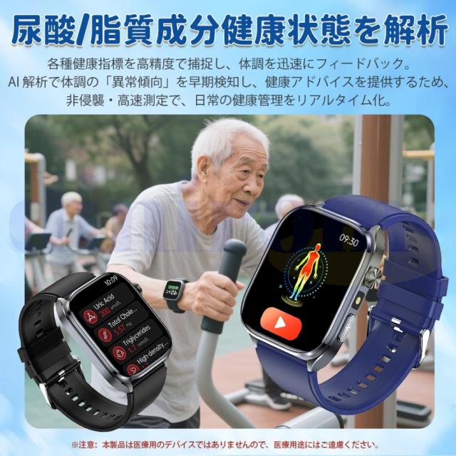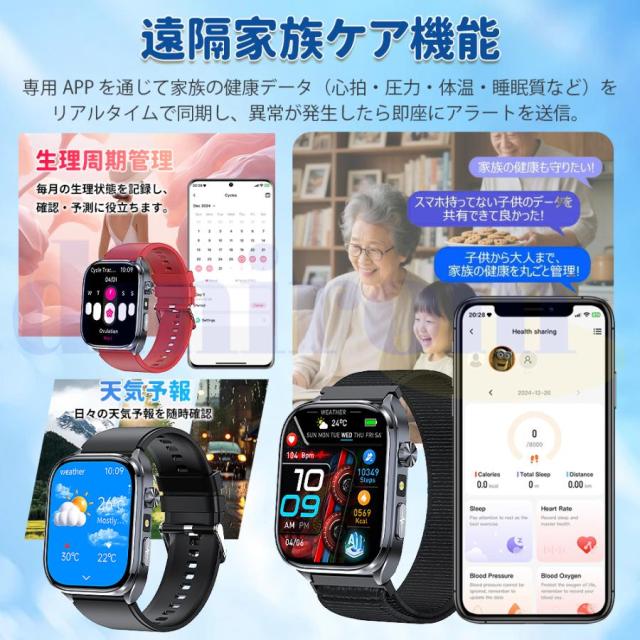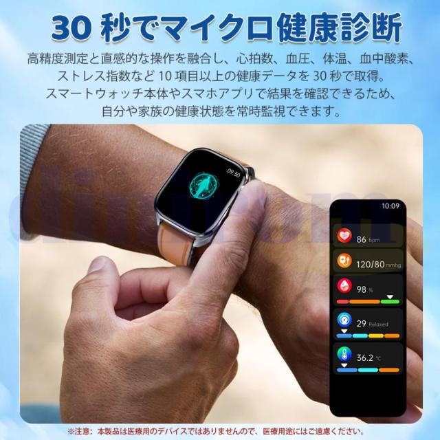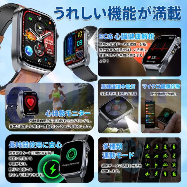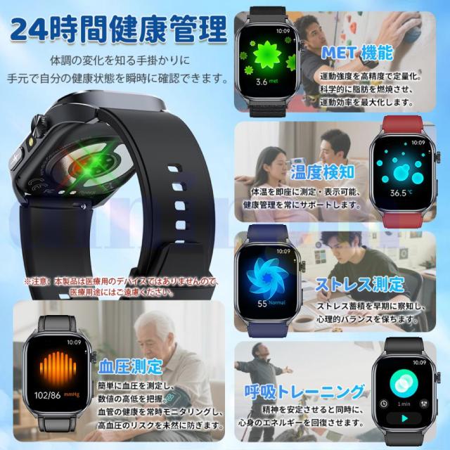 スマートウォッチ 医療レベル健康- 血圧測定 ECG心電図 通話機能 体温 血圧 体組成 血液成分分析 音声アシスタント 血中酸素 歩数計 睡眠 iPhone Android対応