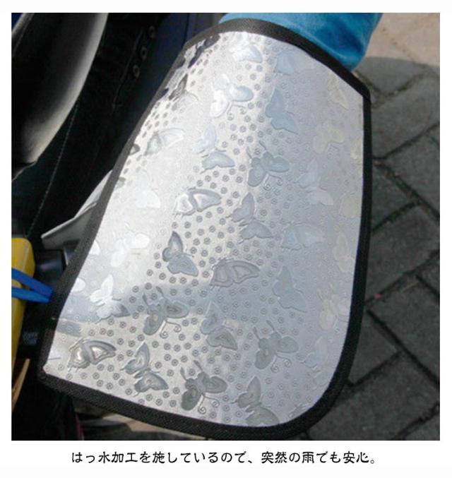 | ハンドルカバーで日焼け対策!サマーハンドルカバー UVカット率99%なので、気になる紫外線をカットできます。 はっ水加工を施しているので、突然の雨でも安心。 メッシュ素材を採用し、通気性が抜群。ムレにくい設計で、長時間の使用でも快適。 機能性と安全性、快適さを追求し自転車ライフをさらに充実させるためのアイテム。 | |
