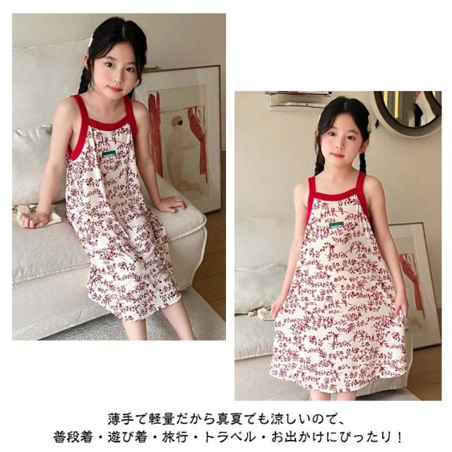 ノースリーブワンピース かわいい 100 総柄 キッズ Aライン ワンピース ワンピース ジュニア 女児 ロングワンピース 女の子 Aライン ガールズ ベビー服 夏服 おしゃれ キャミワンピース 90 110 子供服 120 130 140 キャミソール