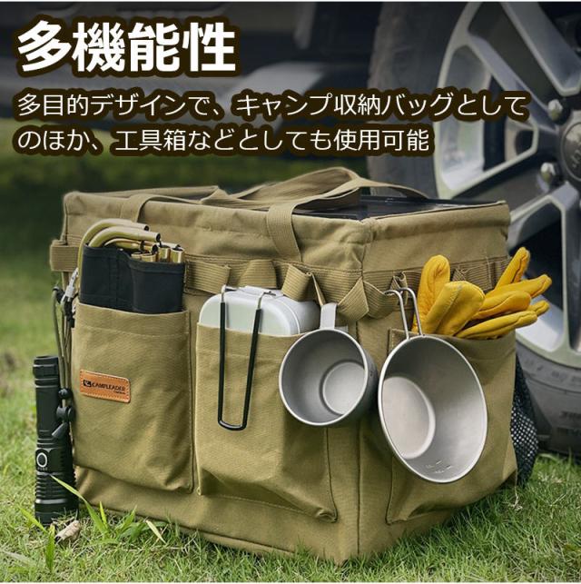 キャンプやアウトドア活動において、便利で頼りになる収納アイテムです。キャンプ道具、ツール、ギアなどを効率的に整理し、持ち運びも簡単に行えます。