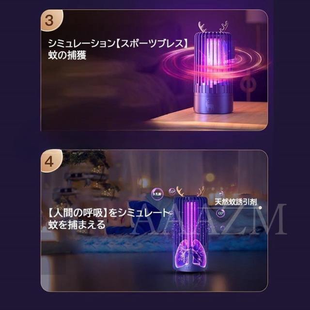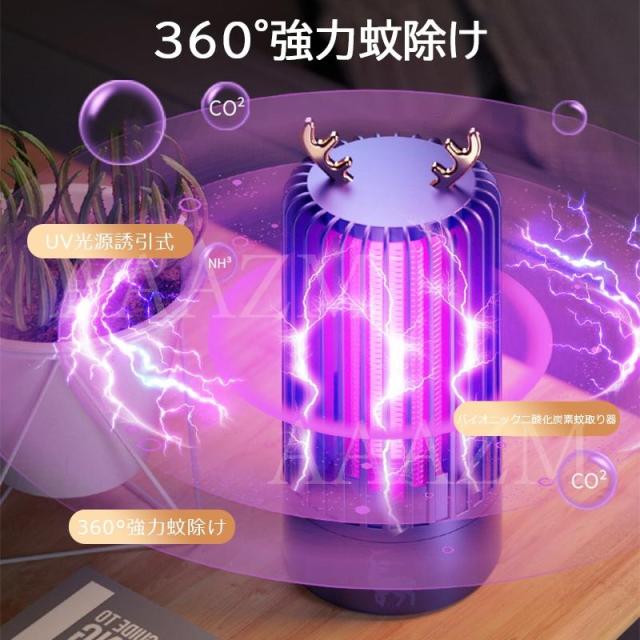 商品特徴:usb式 薬剤不要 誘虫灯付き、360°強力蚊除け、静音、薬剤なし、高い安全性能、360nm~375nm紫外線 Ultraviolet専門蚊取りライト バイオニック二酸化炭素蚊取り器 密高圧電力網 低消費電力 省エネ 底部ケース取り外し可能洗浄