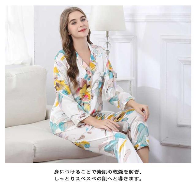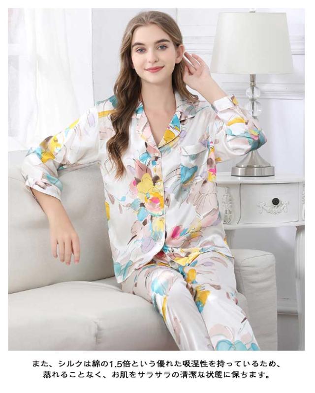 シルク100% シルク パジャマ レディース 上下セット シルクパジャマ 絹 16匁 ルームウェア 無地 長袖 シャツ ロング パンツ シルクサテン ナイトウエア ウエストゴム 敏感肌 低刺激 美肌 吸湿 快適 抗菌 軽量 光沢感 部屋着 寝間着 女性 ママ 記念日 母の日 プレゼント