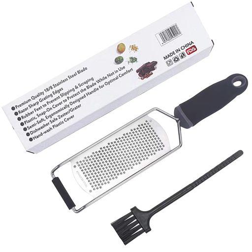 おろし器:このハンドル付きのおろし器は、料理に風味を加えることができます。鋭い刃を持ち、数秒でレモン、チーズ、生姜、果物、スパイス、野菜を削りおろします。さらに、刃は頑丈なステンレス鋼で作られており、曲がったり折れたりすることがなく、錆や腐食を防ぎます。化学的エッチングと均等に配置された四角い穴が、長年使用しても鈍くならない強力な耐摩耗性を確保します。少ない力で、より鋭い切れ味を実現します。