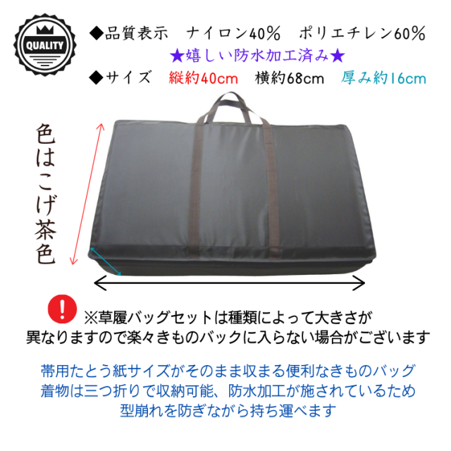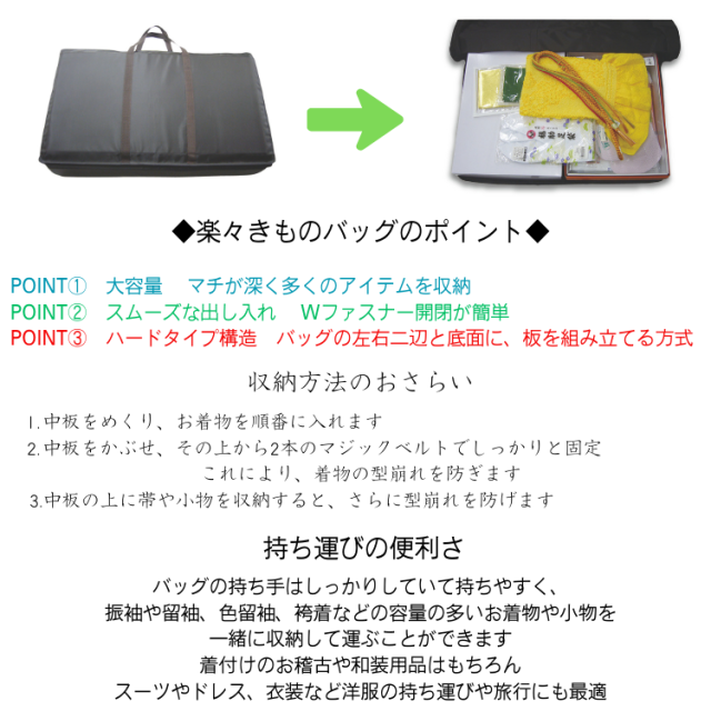 着物バッグ 楽々きものバッグ らくらく着物バッグ らくらくバッグ きものバッグ 軽量バッグ 防水加工 着物小物 和装グッズ 和装小物 持ち運び 和装バッグ