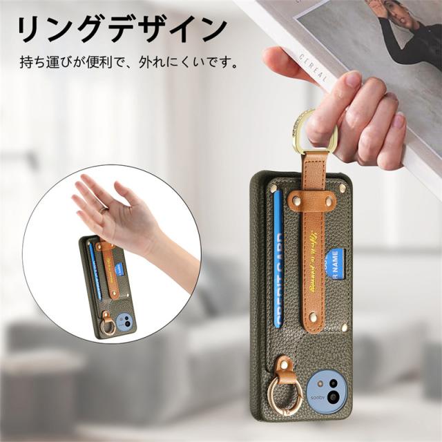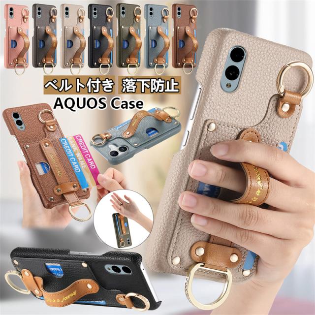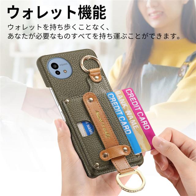 AQUOS センス9 アクオス sense10 sense9 ウィッシュ4 ケース カードホルダー 落下防止 ベルト付き アクオス wish4 ケース 韓国 シンプルスマホ6 スマホカバー BASIO active2 ケース BASIO activeケース おしゃれ かわいい ベージュ くすみ ICカード 大人女子