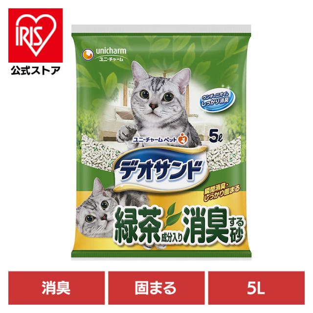 猫トイレ用品 猫砂 鉱物タイプ デオサンド 緑茶成分入り消臭する砂 5L ユニ・チャーム株式会社 猫 猫砂 緑茶 固まる ユニチャーム トイレ 瞬間消臭 ねこ ネコ ねこ砂