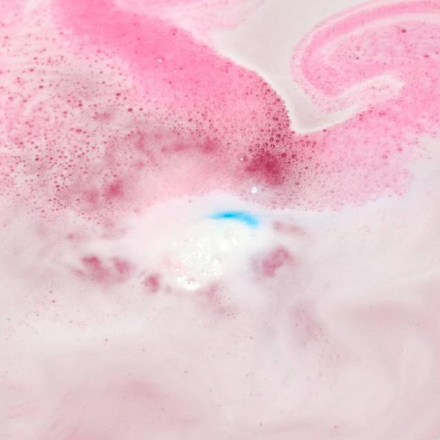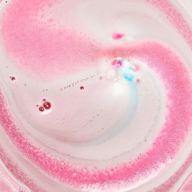 丸いバスボムの中には、スキンケアのスーパースターが勢ぞろい。バニラ果実エキスとベンゾインエキスが春夏の乾燥肌を保湿して、ビタミンCを含むイチゴ果実が健やかに保ちます。