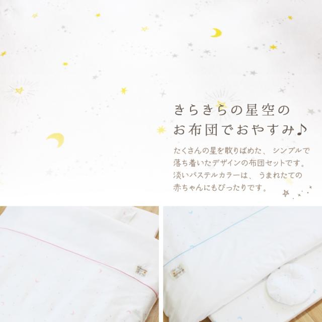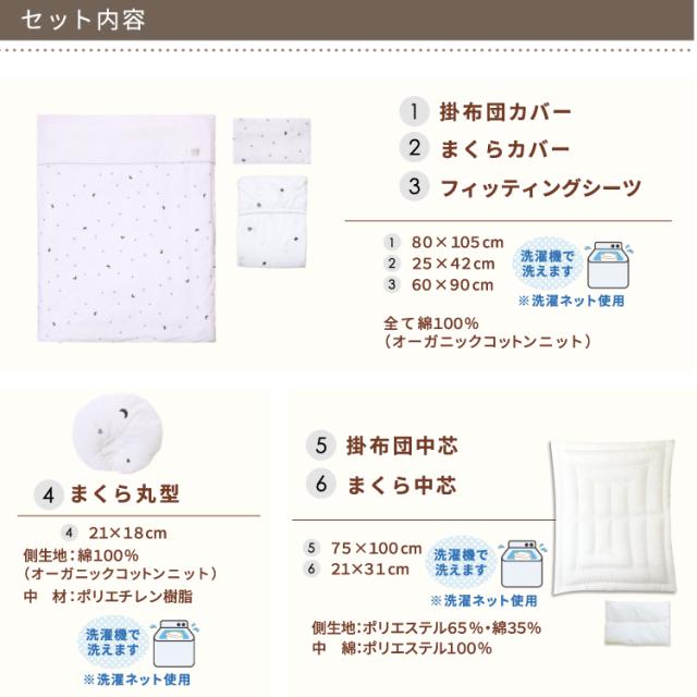ベビー布団セット ミニ8点 オーガニックコットンニット 綿100% 全て洗える 60×90cm ミニサイズ ミニ布団 ミニベッド ニット生地 星 スター きらきら 月 ホワイト 出産準備 undoudou MF