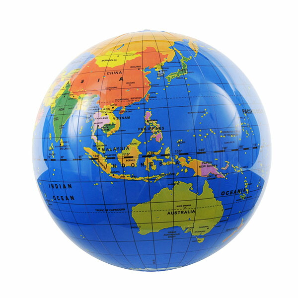 | 海などのアウトドアはもちろん、お部屋の中でも楽しく遊びながら学べる地球儀のビーチボールです。家族でキャッチボールをしながらクイズを出し合いゲームをすれば、体も頭も鍛えられます。 【サイズ】 約直径30cmに 膨らます事ができます。 ・パッケージ =幅15.5×縦18.5×厚さ2cm 【材質】 ポリプロピレン |