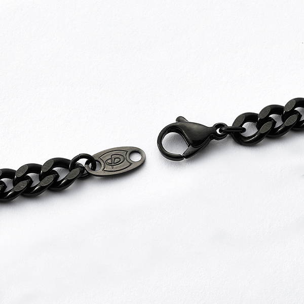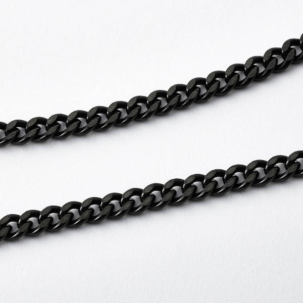 表面に特殊技術のスパッタリング加工で炭化チタンをコーティング。シンプルなデザインと独特の深い色合いで首周りをすっきりシャープな印象に。