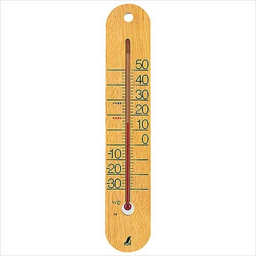 温かく、落ち着いた木のぬくもりのある木製壁掛温度計です。