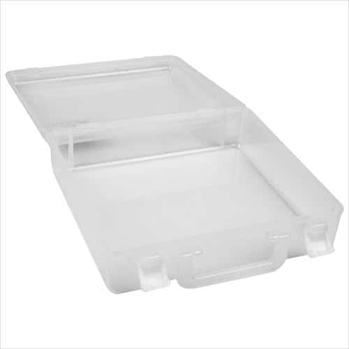 フィッシングシーンでのワームなどの袋ごと収納にも最適です。仕切板無しです。中身が見易いクリアータイプです。