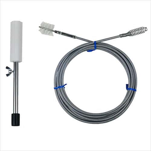 適度な硬度の特殊ワイヤーを使用しておりますので、曲折部も容易に通ります。ブラシがついていますので、パイプの内側についた汚れを落とします。
