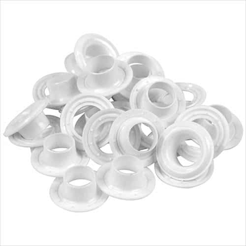 ●ハトメ穴径:約12mm。●最大取付厚:約3.5mm。●下穴サイズ:12.0mm。●入数:15組入。●適合機種:SK11プラスチック両面ハトメパンチ(No.1900)。●色:白。