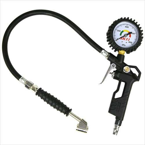 一輪車、車いす、自転車、バイク、自動車、トラクター、中型自動車などのダブルタイヤにも対応します。デュアルチャックで米式バルブと英式バルブに使えます。ダブルタイヤ対応チャックでトラックにも使えます。圧力計付きでタイヤ内の空気圧が計測できます(米式バルブ)。ボタンを押すだけで減圧できます(米式バルブ)。
