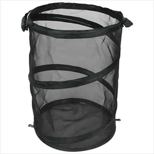 メッシュタイプなので、濡れ落ち葉等の水が抜けやすく、剪定後の枝葉の風通しが良好です。ゴミ袋を付ければ土作り・水まきにも使用可能です。強力スプリング内蔵でしっかり自立、何も入っていない時も形状を保ちます。2カ所のロックでコンパクトに収納できます。