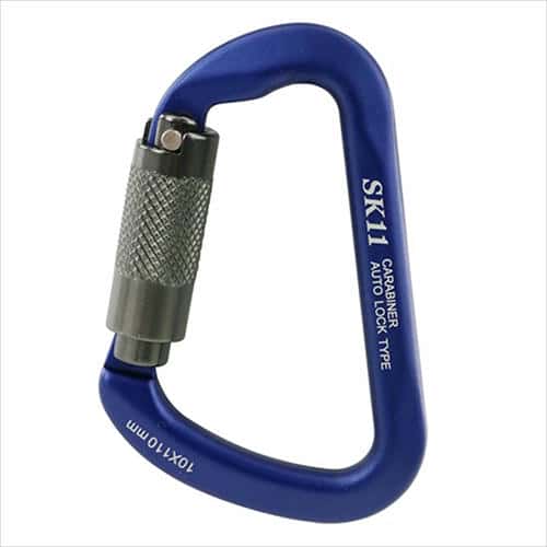 ゲートをひねってロックを解除、戻すとがっちりオートロックできるカラビナです。