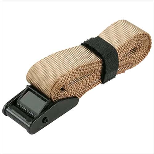 ●ベルト幅:25mm。●全長:2m。●最大使用力:0.8kN(82kg)、破断荷重:3.2kN(326kg)。●バックルの種類:カムバックル。●端末の仕様:エンドレス。●ベルトカラー:コヨーテ。